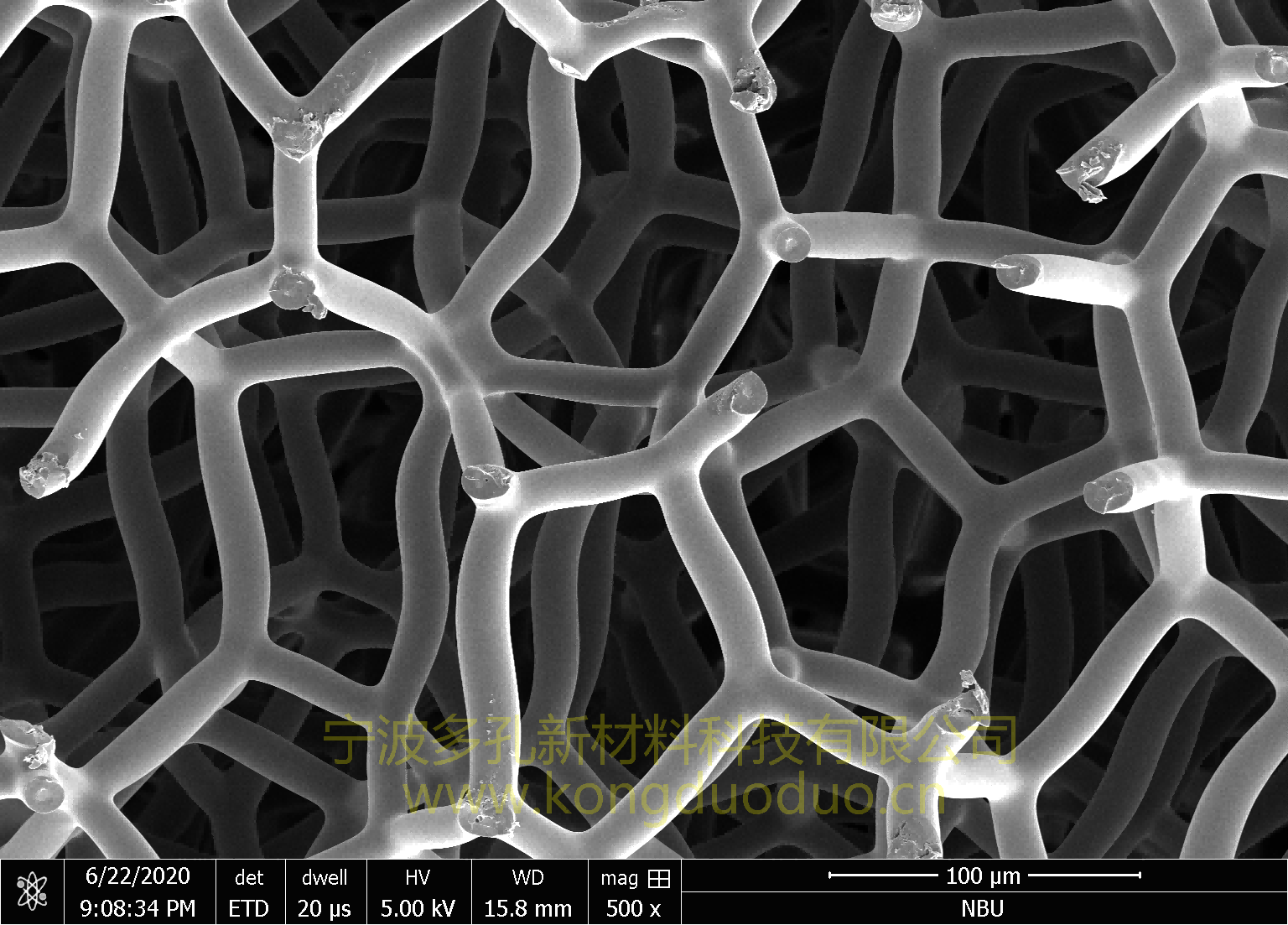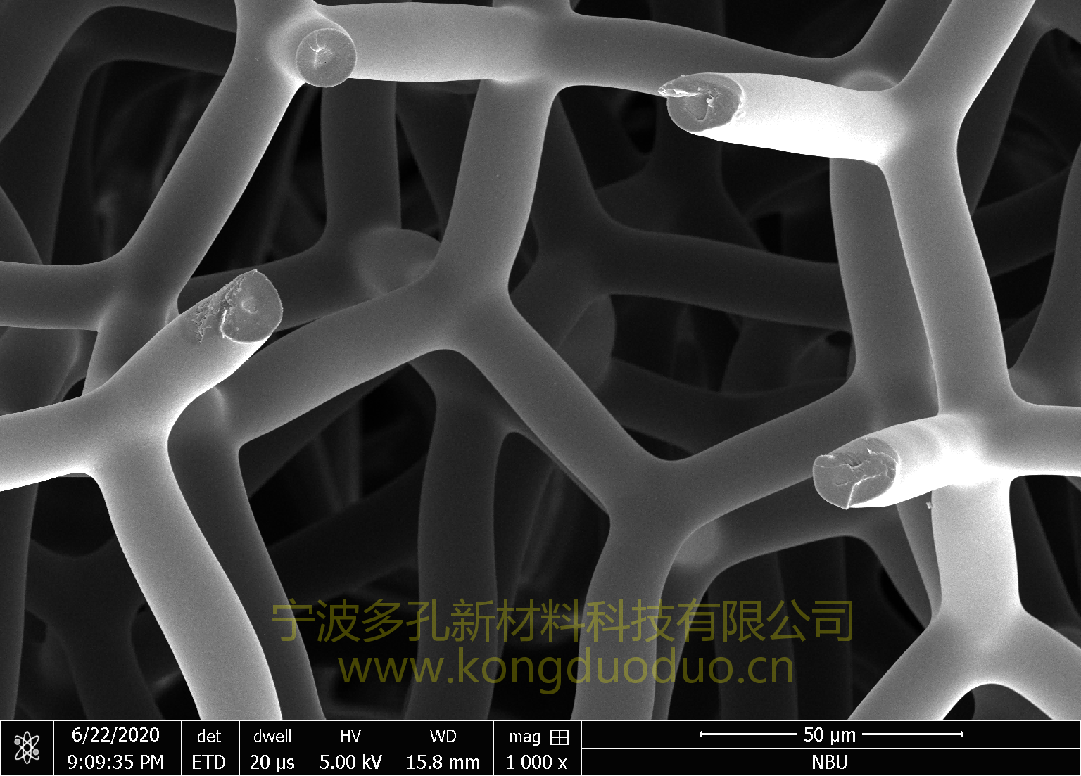 3)開孔三維網狀結構:每個骨架都是由至少為3個結構單元所共有,泡孔數80~300孔/25mm。