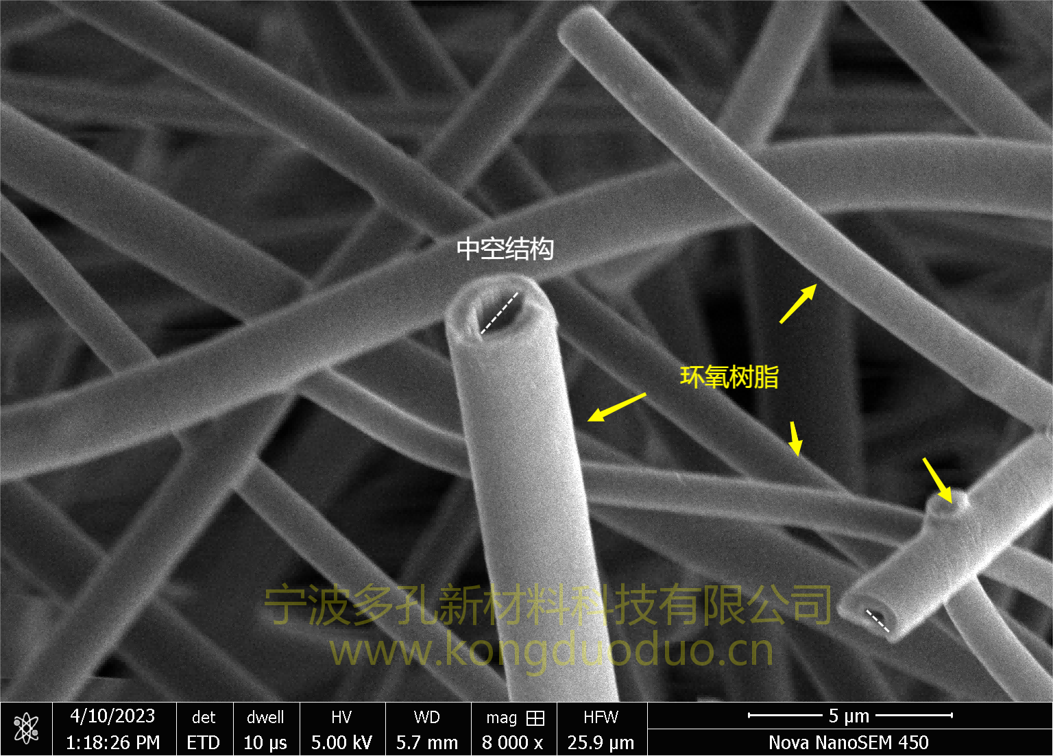 1)從0到1:在納米尺度下進行3D分子增材制造環氧樹脂微管,是國內外首次可量產的微管海綿材料,微管(中空結構的環氧樹脂纖維)的微管粗細為1~3um,內部是中空結構,空心直徑約0.5~1.2μm,壁厚約300~500nm,微管之間形成5~15μm的空隙。
